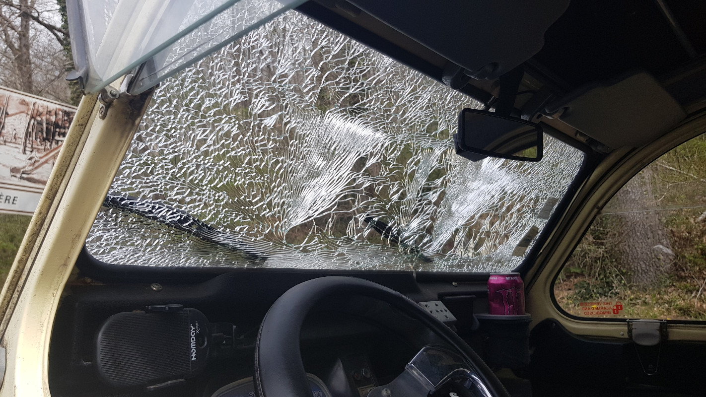 Donc vus que nos pare brise ne sont pas feuilletés... si ça vous arrive... surtout ne JAMAIS rouler avec !!!