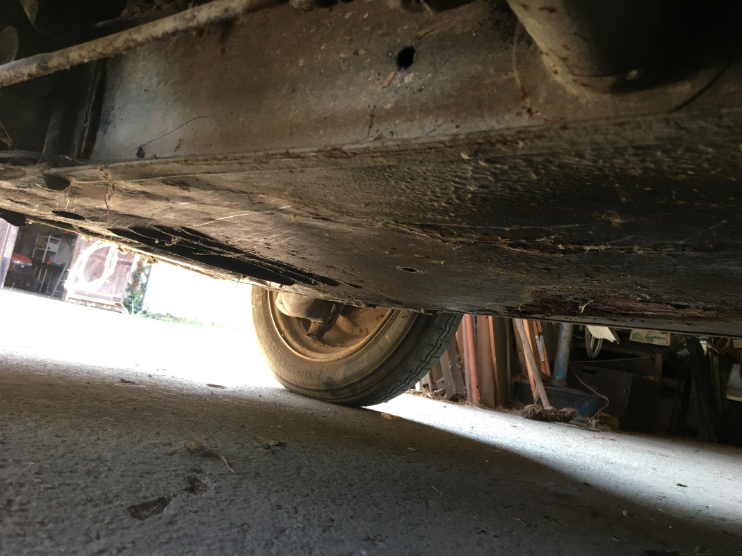 Il y a TOUT à revoir : planchers rivetés sur deux épaisseurs (!), bas de caisse percés, intérieur (plus récent) déchiré.