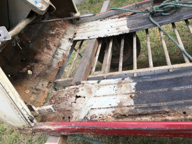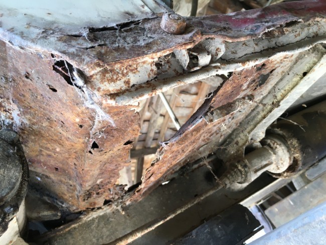 Dans les prochains jours, je vais déposer la coque, puis découper la tôle centrale du châssis, au moins pour en traiter l'intérieur et vérifier s'il est sauvable..