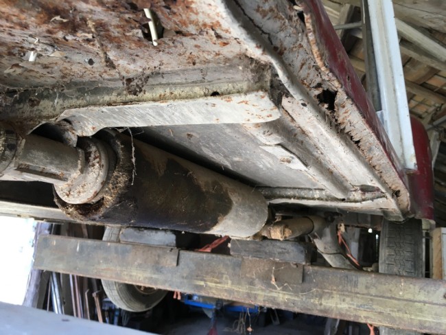 Ensuite, une fois traité, le peindre et remonter les trains après vérifications des pivots et des pots de suspension, réfection des freins arrière, remplacement des soufflets de cardan, remplacement complet des tuyauteries de freins et d'essence (celles-ci sont rouillées à un point !).
