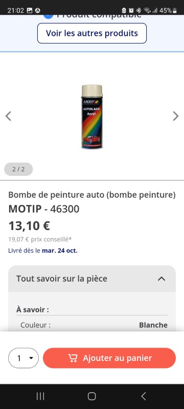 Et partout où j ai cherché... la peinture carosserie en code ral , donc pas spécifique constructeur est vraiment beaucoup moins chère !