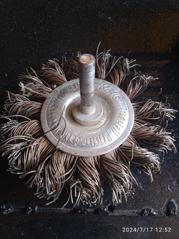 Dans le cas de jantes juste à rafraîchir, une petite brosse souple, voir en poils nylons suffit sur la perceuse.