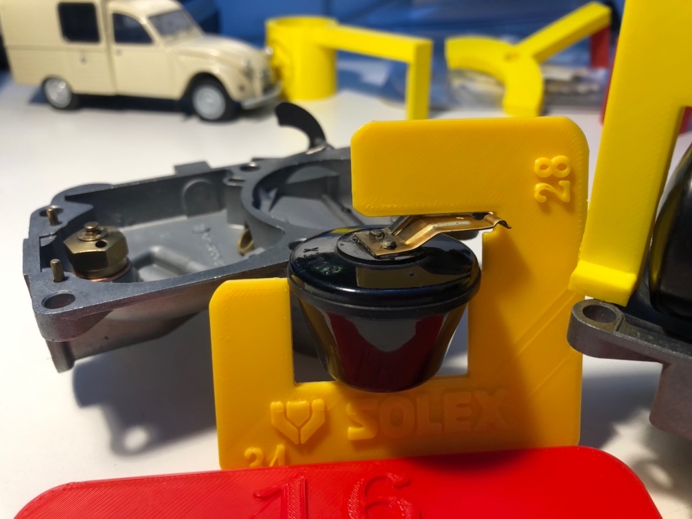 Nous vous proposons un jeu de cales pour régler le flotteur et le pointeau sur tout carburateur Solex monté sur 2cv et dérivés (sauf le 22 ZACI qui n'a de réglage)