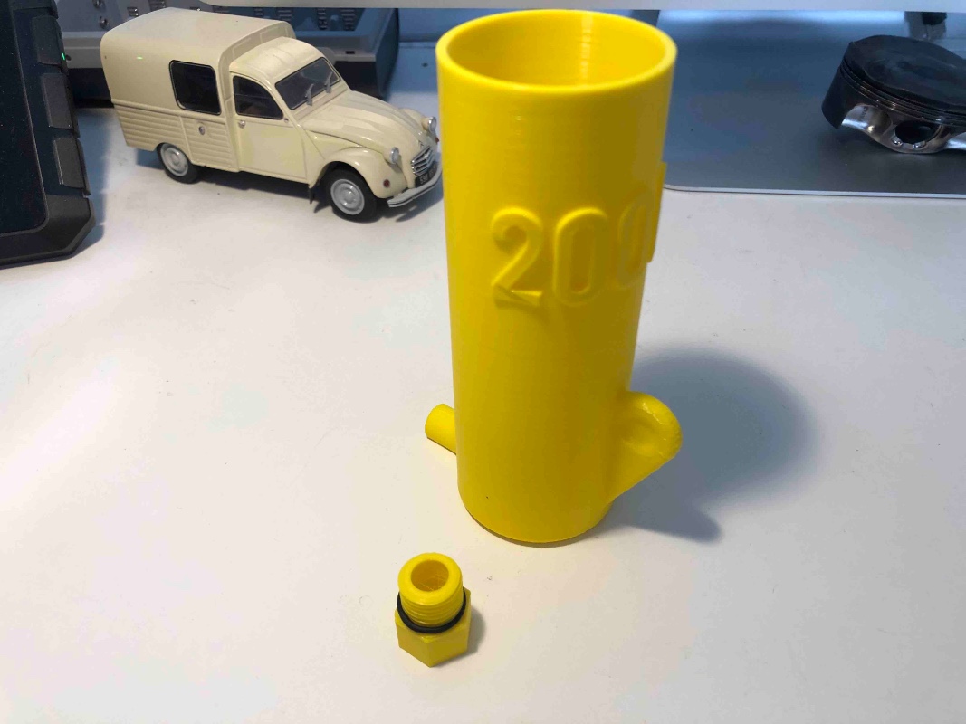 Vous posez un bouchon percé à la place du bouchon Citroën (il y a un joint torique pour assurer une bonne étanchéité) et vous y insérez le réservoir.