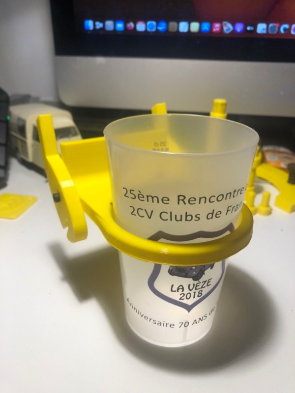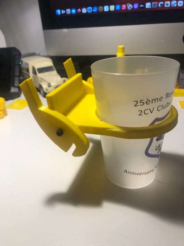 Il vous est proposé par Bernard du forum 2 pattes, un porte gobelet qui s'accroche sur le cache de protection.
