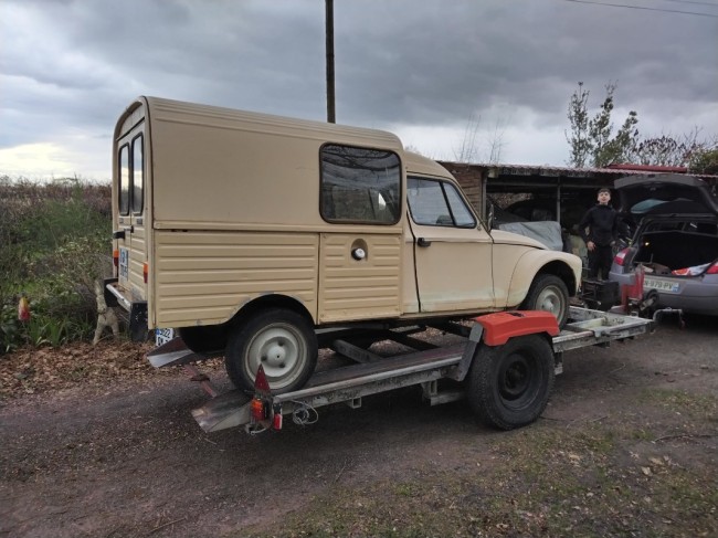 Chose que j’avais pas remarqué avant de prendre la photo des roues dans la remorque, l’immatriculation de ma 2cv commence par AK. Dommage que ce ne soit l’immatriculation de l’acadiane.