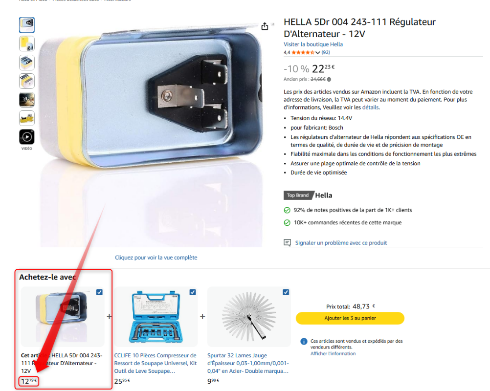 Du coup, je décoche le coffret de clefs et le jeu de cales de "j'achète". Enfin ... je mets dans le panier ! Et zhou .... "promo" à 48% !!