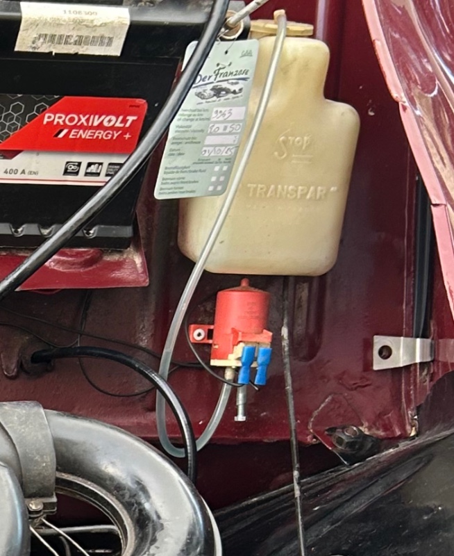 D'ailleurs cette pompe m'agaçait car le jet est trop puissant et arrose la capote mais pas le pare brise....alors dans un souci d'efficacité et pour revenir à l'origine, je pense la virer et remettre une pompe manuelle.