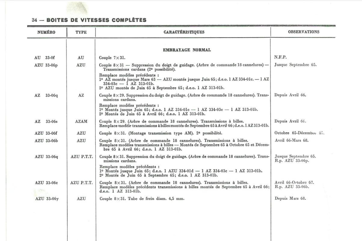 Pour ton problème de boite de vitesses, je me demande si tu n'aurais pas une AZU PTT. Les boites de vitesses étaient différentes.