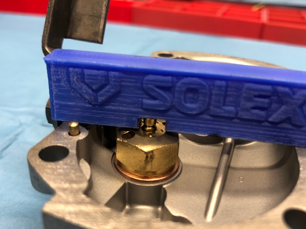 Par contre, dans le cas d'un simple corps conçu comme l'est le Solex 34, le pointeau situé dans le couvercle de cuve, appuie directement sur la fixation du flotteur dans le corps, partie impossible à ajuster sans risque de casse car très proche des fixations de celle-ci, sur le corps du flotteur qui nous occupe ...