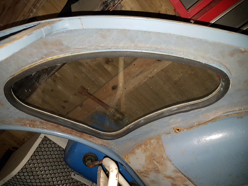 tu découvriras certainement que la partie inférieure du cadre a disparu de par la corrosion, le joint ne reposant plus uniformément, il a pris cette forme courbe.