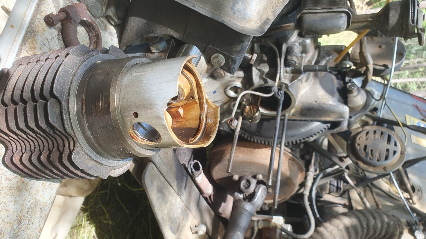 mon moteur vu de dessus mon cylindre piston gauche déposé le nouveau cylindre en position lucky40 c'est ce kit là que j'ai approvisionné