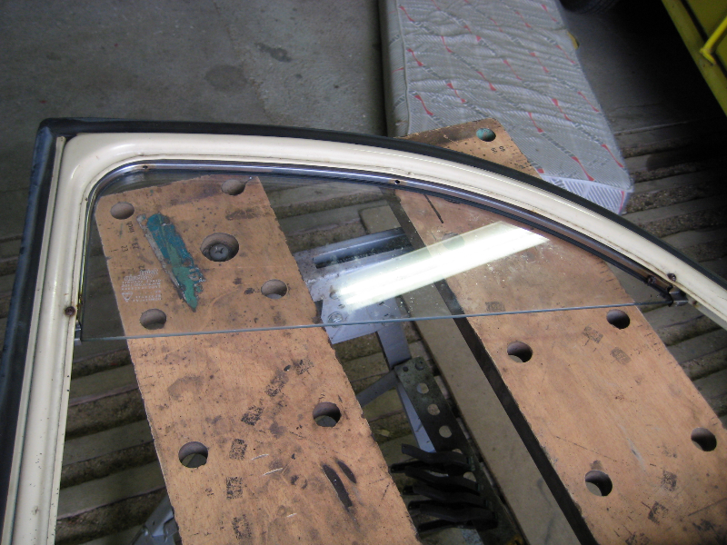 La partie fixe des vitres avant a toujours été fixée par quatre vis dans la feuillure pour maintenir l'entourage métallique de vitre et par deux autres vis à l'intérieur pour fixer les butées ou support de glace fixe.