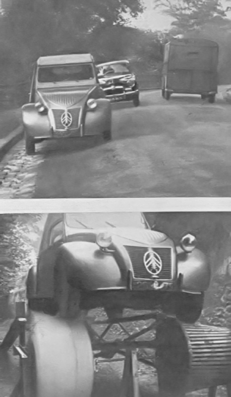 helios a écrit :je l'ai déjà vue cette 2cv sur une photo d'époque, c'est un prototype. Le système permettait de garder la voiture parfaitement horizontale malgré les forts dénivellements d'un côté à l'autre.
