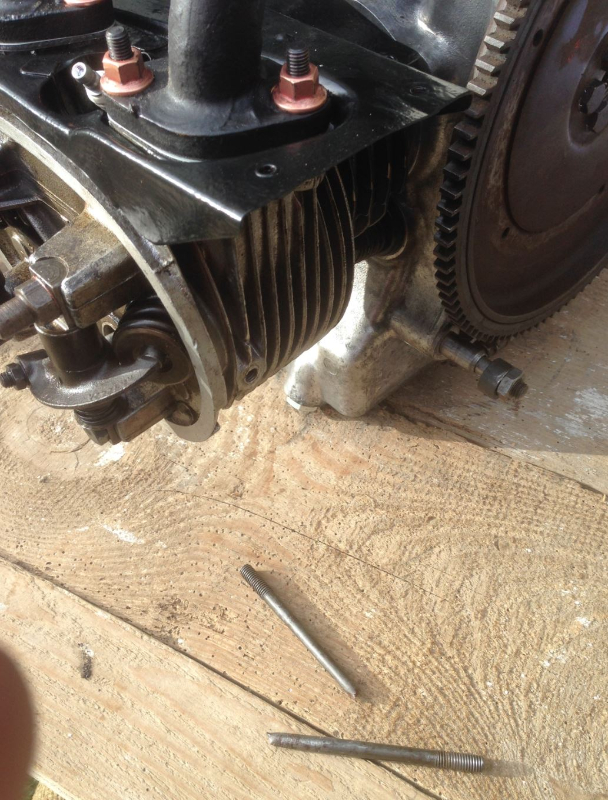 Pose des culasses ( les 4 soupapes neuves et rodées ) , au moment du serrage a la clef dynamo un violent bruit sur le goujon inférieur :( :( :( Décidément ce moteur n'avait pas envie de se reveiller ....