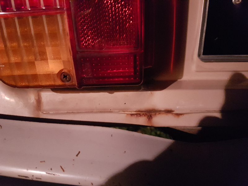 Regarde sous les feux arrières, il peut y avoir de la corrosion... sur la mienne (club 1982 beige Colorado) la tôle supérieure est perforée des deux coté, résultat il faut changer la tôle supérieure des feux.