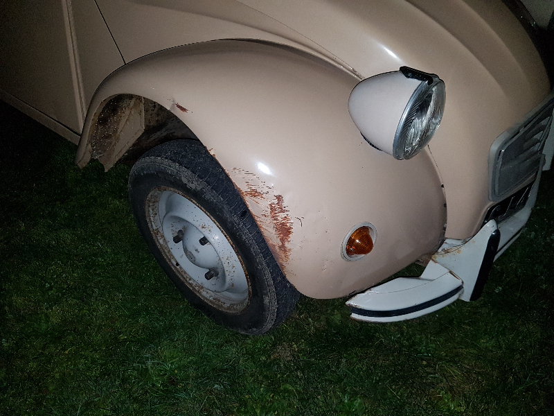 La face arrière commence à peine à avoir quelques traces de rouille, je ne pense pas qu'un remplacement soit nécessaire au pire un bon décapage + traitement + peinture...papy deudeuche a écrit :Très belle deuch si un jour tu te décide à changer la jupe arrière ne la perce surtout pas pour mettre ta plaque colle la avec de la colle à pare brise plus 2 tetes de rivets