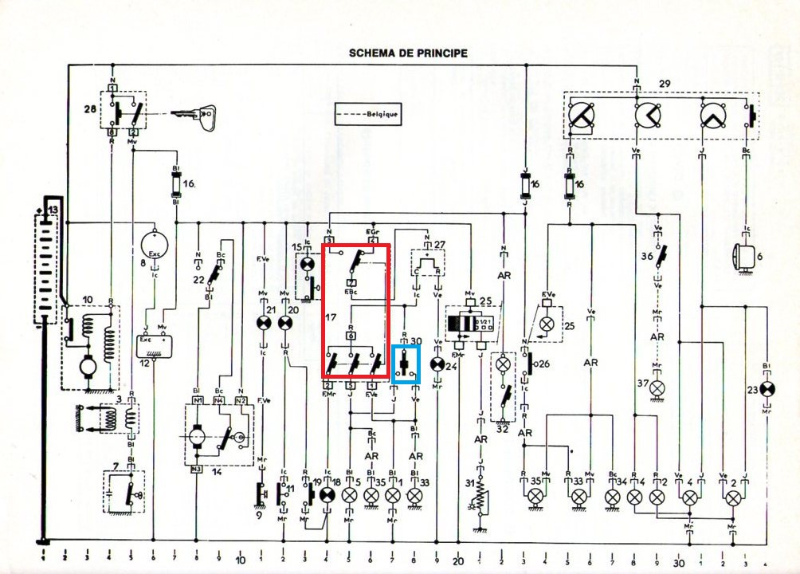 Voici donc le schéma électrique d'une 2 CV 6 avec le warning.