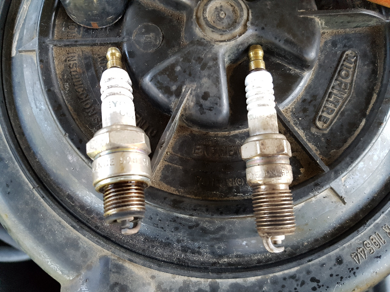Juste une petite remarque, tes 2 bougies sont différentes (longueur du filetage) , la position de l’étincelle est donc différente entre les 2 culasses, ta fumée n'a peut être rien à voir avec cela mais regarde y quand même, ça peu être une piste :roll: :roll: :roll: :wink:.