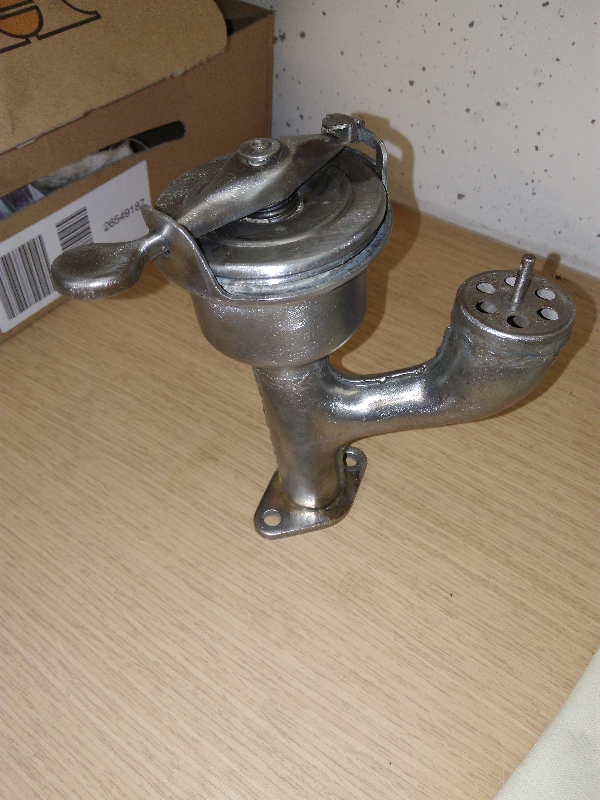 Apparemment tu as un reniflard à clapet avec rondelle en caoutchouc ; c'est bien (bien que ce ne soit pas exactement le bon modèle pour une 2 CV de février 1952 !) Mais ces reniflards ne fonctionnent pas toujours très bien et même les puristes acceptent que soit monté un reniflard à hanche en caoutchouc dit bec de canard, pour protéger le moteur.