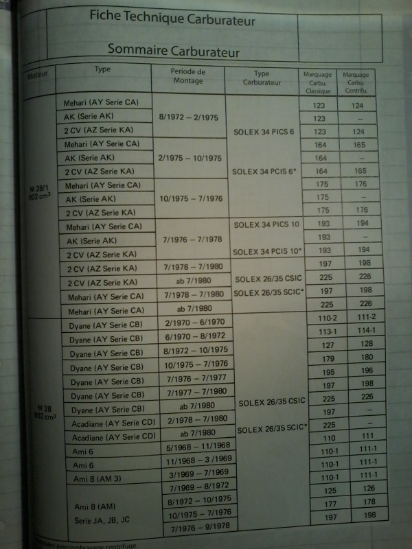 ci joint quelques documents sur les carburateurs de nos deudeuches et sur les caractéristiques moteurs dont taux de compression initial si ça peut intéresser quelqu'un à la dernière colonne de droite , 3 ème document.