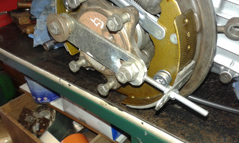 voilà c'est fait les mâchoires de freins sont centrées, il me reste à voir si les tambours passent sans frotter. Pour le moment ils sont chez le rectifieur...