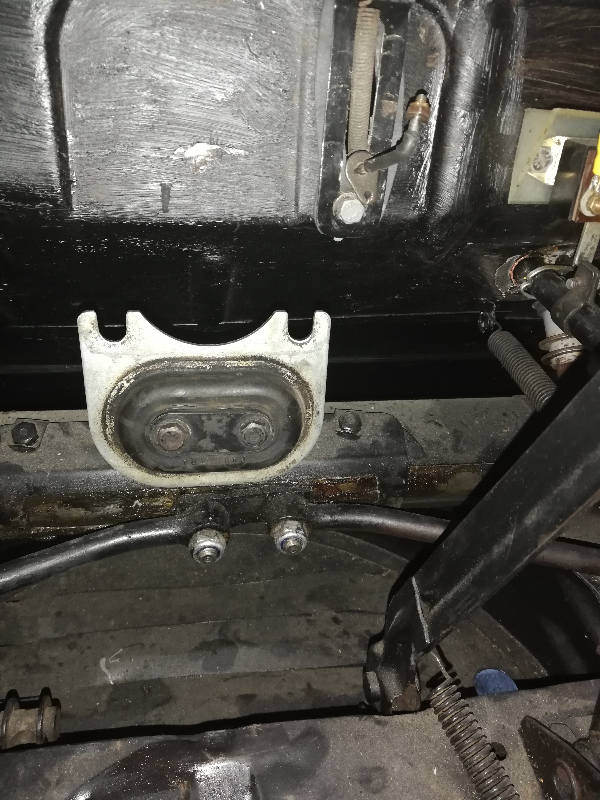 Jai loupé ta question :oops: , mais je confirme le support de boite le gros déport en caoutchouc va vert l'arrière , ( coté habitacle ).