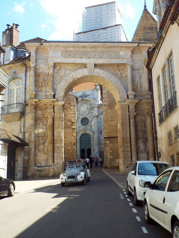 Une 2 CV, quand même, sous l'arc de triomphe.