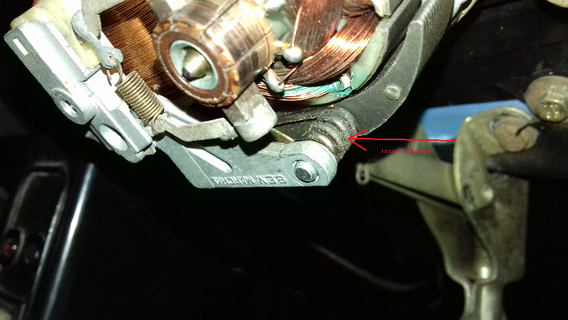 je vous explique donc , le ressort d’arrêt n'etait plus assez fort pour écarter la stator ( partie fixe du moteur) du rotor (partie tournante ou s'appuient les charbons)