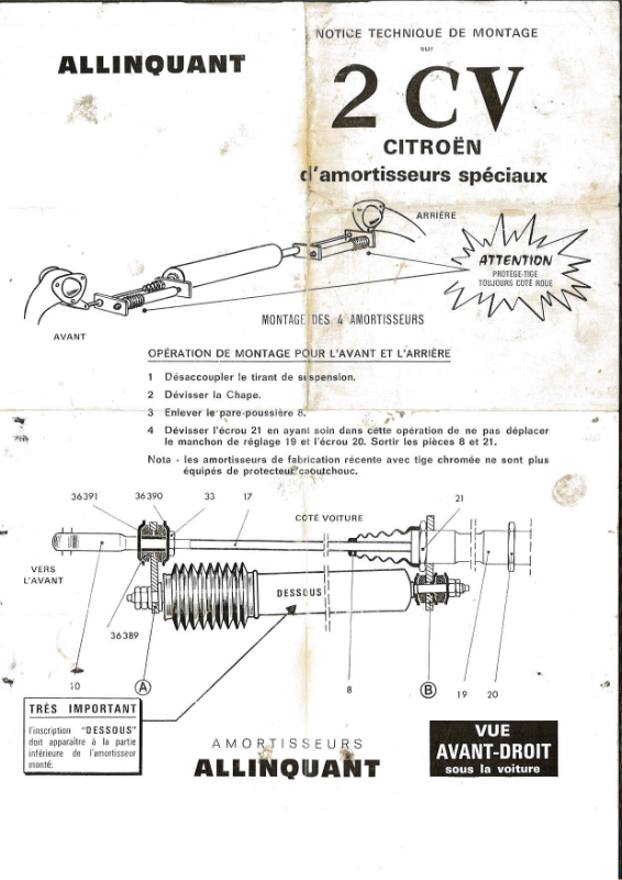 Suite au passage au contrôle technique, je dois changer mes amortisseurs avant sur ma 2CV6 AZ SIE de 1970