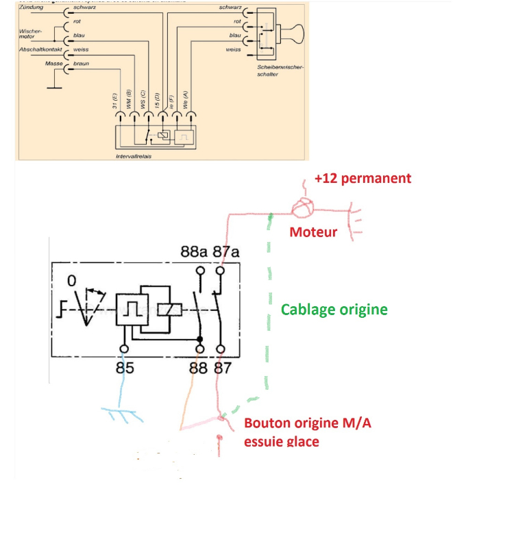 Voila un p'tit montage pour avoir un balayage intermittent sur vos 2CV.