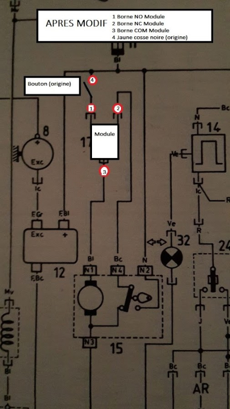 a dériver vers ce module, et les fils du module a raccorder à la place (bouton essuie glace)