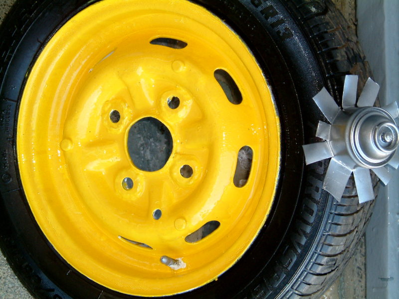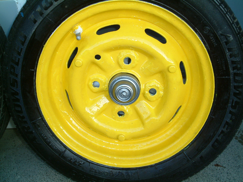 The Road wheel pictures tell another Story... I found them thrown away in a waste metal skip, complete with tires... after extensive cleaning, and modifying the stud holes, I painted them, and I fabricated the Chrome hub center caps from a paint spray containers, Original Honda hub caps , are commanding £ 35 .00 each on E.Bay..second hand. mine look just as good home made at NO COST.