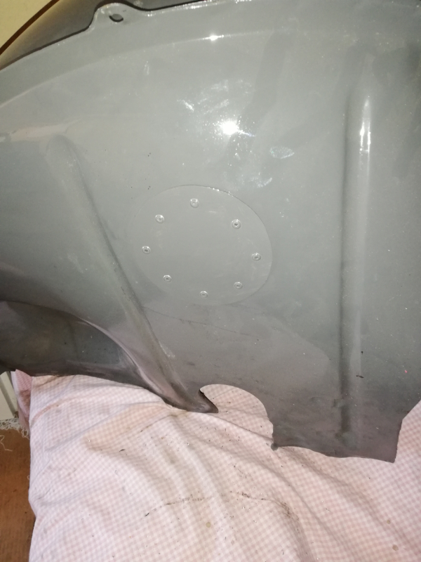 Pour la découpe, j'ai fait à la cisaille , au plus près du cercle tracé sur le métal avec une pointerole affûtée puis avec une ébarbeuse, j'ai ajusté au cercle tracé...simple et efficace...reste à peindre le tout à la couleur de la voiture...