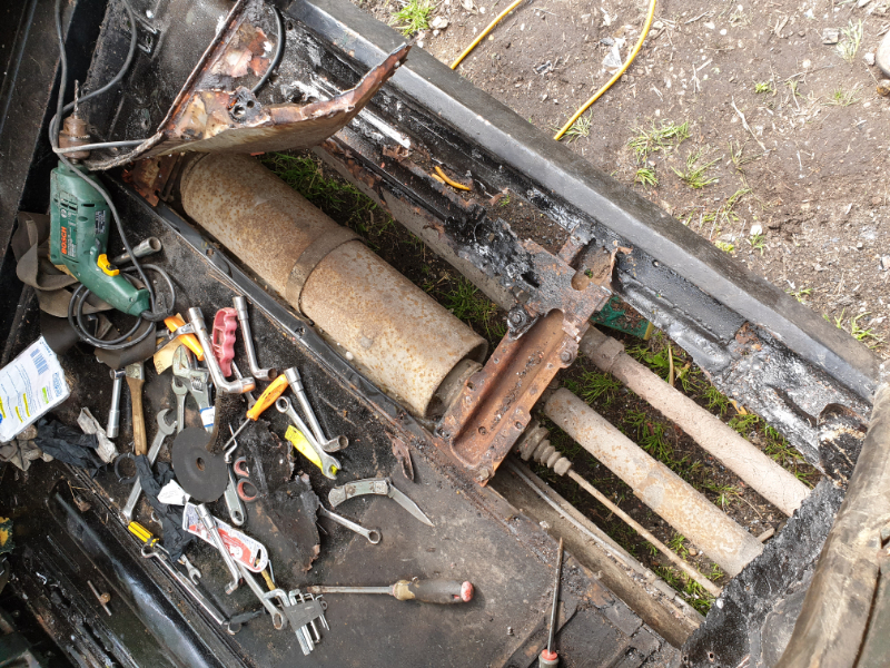 Jai commencé à les démonter, surprise: les bas de caisse sont eux aussi rouillés.
