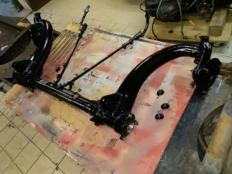Après avoir nettoyer, dégraisser et dérouiller les essieux de ma 2CV, je les ai repeins en quartes couches :
