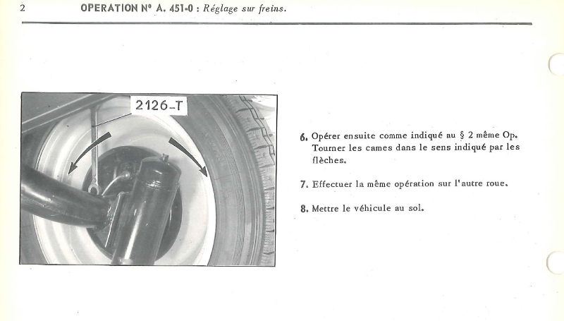TU te couche dessous la voiture et derrière le tambour tu va voir deux écrous clé de 14 mn ,c'est le réglage de chaque mâchoires.