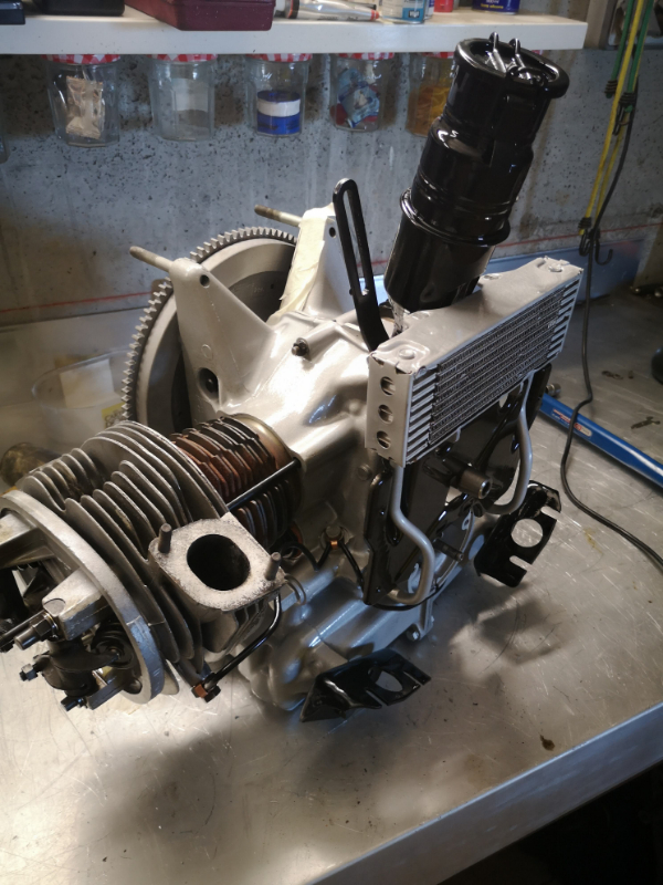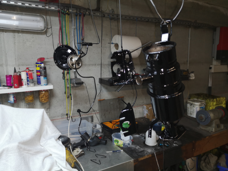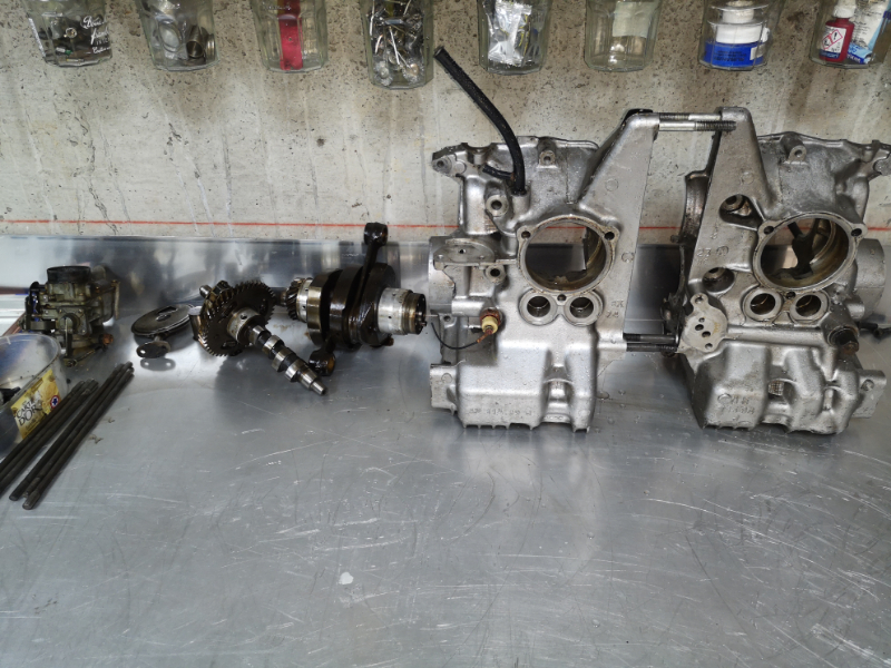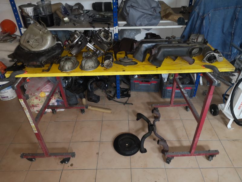 Démontage du moteur, préparation et sablage des premières pièces puis mise en peinture.