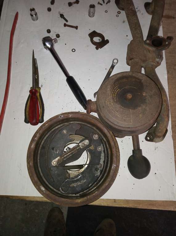 j'ai démonter tout l’intérieur du tambour arrières restant, et j'ai trouvé une vielle roue de secours galette pour pouvoir déplacer la 2cv.