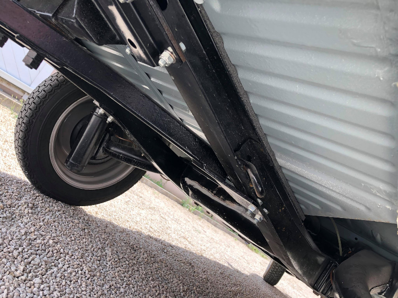 Belle azam ! Reste a boucher les trous dans les ailes avant et peut etre la fermeture du capot qui n a pas l air d etre le modele d origine, la durite d essence qui coure le long de l aile c est etrange , on ne voit pas bien le chassis y a t il les 4 brancards ? Sinon elle est top