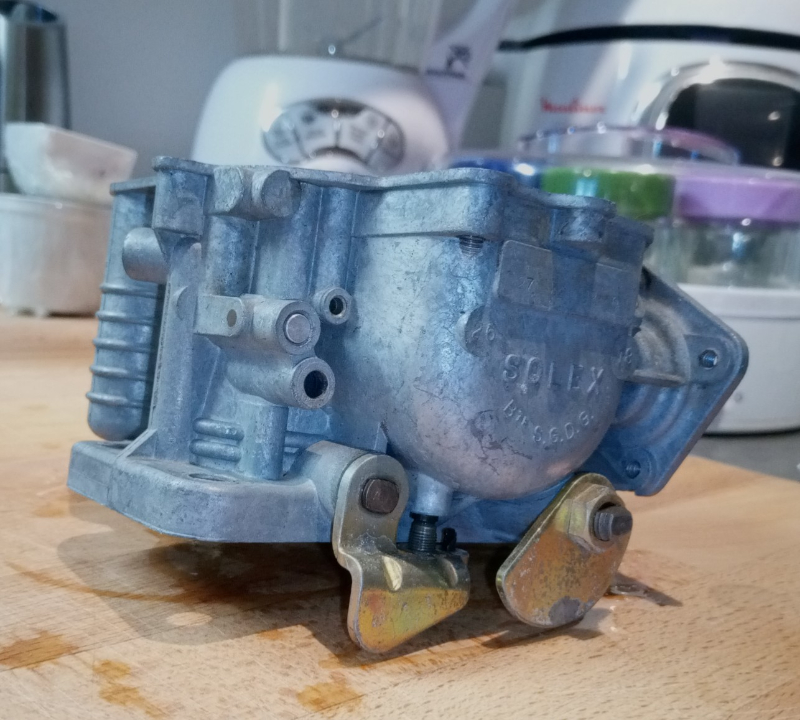 Et voilà c’est partie, démontage, j’ai récupéré un carbu double corps dans les fourrés chez mon beauf, direct bac à ultra son.