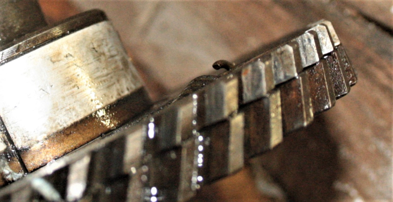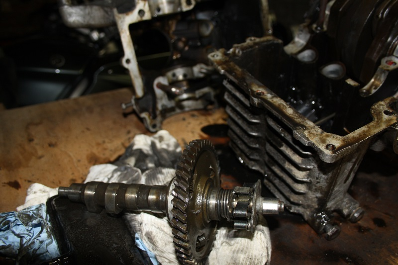Photo de l'arbre à came, quelques dents sont abîmées côté rattrapage.