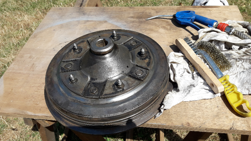Ben non j'ai attaqué le deuxième , ( à mis ombre avec un léger vent , quand je pense qu'il y en qui bosse ) mais je me demande si je vais pas les désossés complétement les tambours sont en deux parties , il y a 5 vis à démonter mais avant il faut que je me renseigne sur le remontage surtout sur le centrage des deux éléments et sur le couple de serrage , à moins que l'usinage permette un montage direct . Et en plus au passage je me suis occupé de la roue crevée de la 2 cv ...........