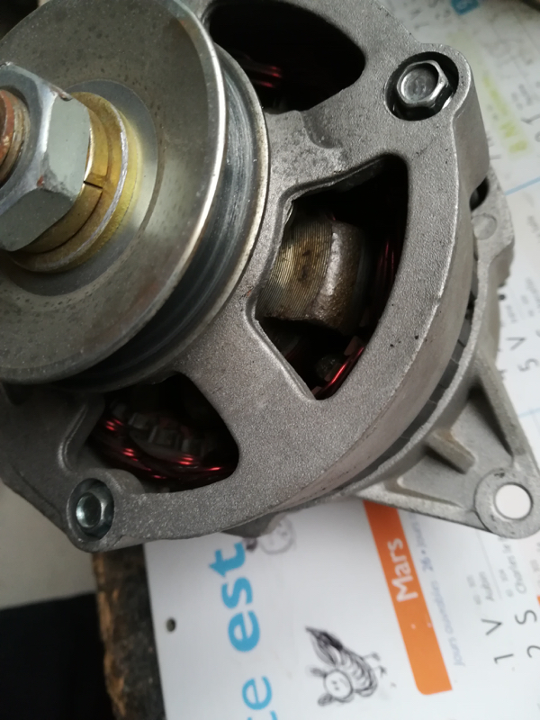 Je trouve quand même "bizarre" qu'un alternateur neuf de 2015 sur un véhicule de collection donc pas bc de km soit "out", les bague inductrices sont effectivement rayées, mais j'ai deja vu plus rayé que ça et qui fonctionnait parfaitement, tu peux demander à le faire tester sur un banc chez un electricien auto éventuellement.Pégé a écrit :Diode ?? Quesaco et ou se trouve t il ?