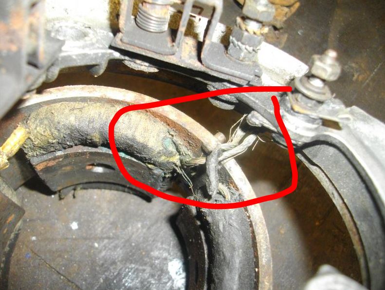 pour sortir l'induit il faut devisser les 2 vis et faire pivoter la collerette en alu qui portent les charbons , sauf que les extremites des inducteurs sont tres court et fixé derriere , si jamais remis en etat les cosses vont s'arracher ou fil comme sur la photo ( mais la il faut faire quelque chose) . Change deja les 2 charbons si tu ne veux pas partir dans un délire . Le corps de la dynamo en general est bien coincé dans le carter et des fois elle ne sort pas facilement.Pour le trou de la pige voir photo