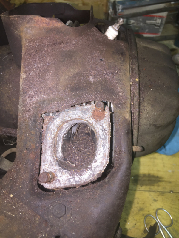 Boite a vitesse rénovée. Carrosserie prête pour le carrossier. Coté moteur, un peu de rouille coté sortie échappement. Tubes alu des culbuteur HS sur un cylindre . Que c' est il passé ???
