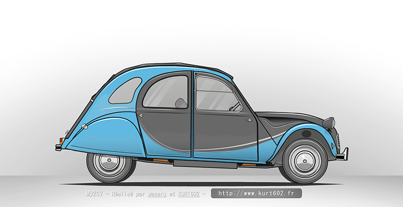 Comme les dessins valent plus que les explications, je pense à ça (fait à l'aide du programme sous Adobe Flash de Kurt602 trouvable ici : http://www.kurt602.fr/mydeuxcv/my2cv.php) :