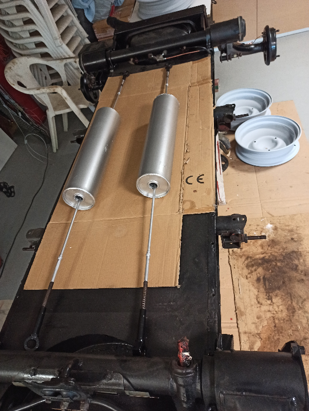 J'ai peint les pots de suspension en gris argenté (j'avais une bombe de peinture à trainer) et je suis en train de me dire que c'est peut-être pas une bonne idée( Si on les aperçoit sous la caisse une fois remontée?). je verrais à ce moment là et s'il le faut je ferais du coloriage.