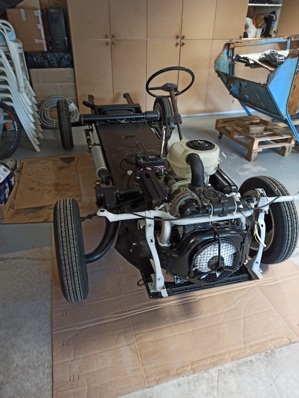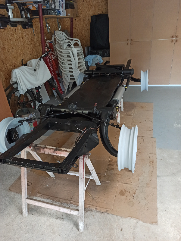 et voilà le châssis remonté avec roulements neufs, freins et durites neufs, réservoir neuf.