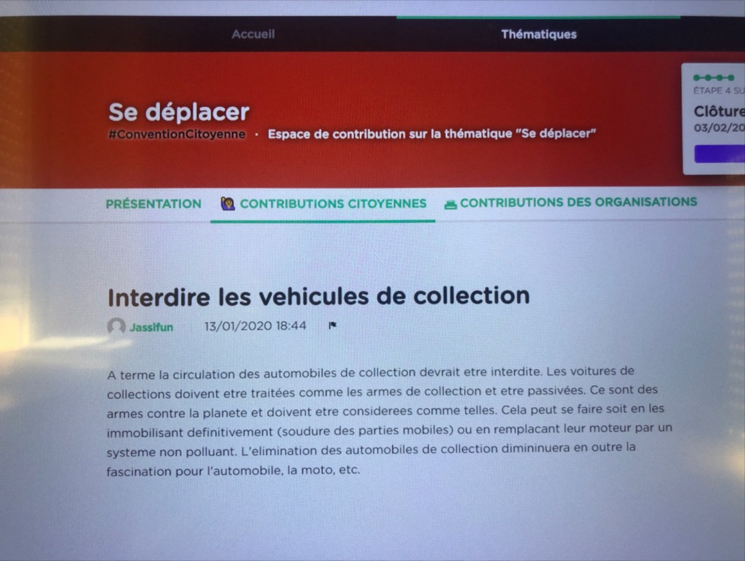 Ensuite, nous pouvons aussi débattre sur les propositions de la convention citoyenne, concernant le sujet "se déplacer" :